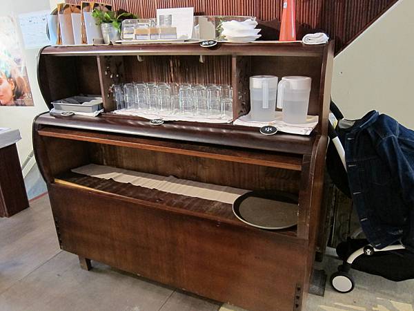 成為店裡用來擺放水杯、餐盤古色古味的櫃子。