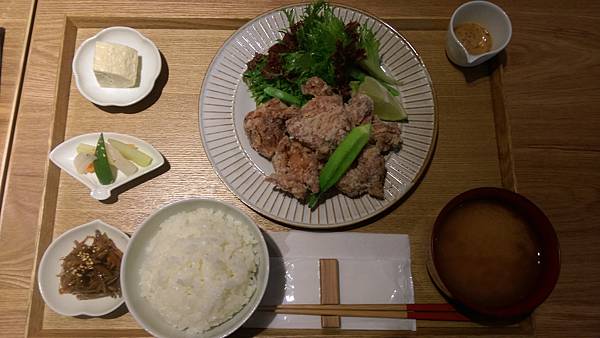 而店內超人氣餐點就是龍田揚炸雞塊,不少人就是衝這道美食來吃的,不同於可用各種調味料醃製,麵衣也不限太白粉和麵粉作的唐揚炸雞,龍田揚炸雞是以醬油為主加了其他調味料醃製而成,裹上太白粉去油炸,炸雞塊顏色並不是想像中的黑黑亮亮,入口後不乾澀,反而襯托出雞腿肉的鮮甜,很容易讓人一口接一口吃。