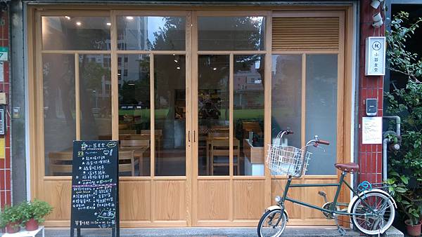 店招牌圓圈裡一個K字母,代表英文單字kitchen廚房意思,而店門口的小黑板則是手寫今日餐點,店裡裝潢陳設簡單,白色牆壁、駝色桌椅外沒有多餘裝飾,而菜單也簡單,一張紙搞定,餐具選擇以實用為出發點,顏色部分雖然是白色居多,但不全然是白色,偏向素雅設計又不過於普通,搭配菜色後更顯得好吃清爽,讓客人在動筷子前常常就是拍照的動作。